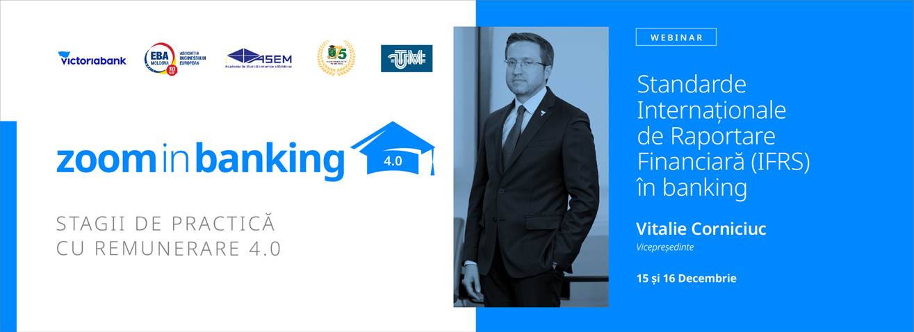 În data de 15 si 16 Decembrie te invităm la două webinare, din cadrul proiectului Zoom in banking 4.0, în domeniul financiar-bancar ,,Standardele Internaționale de Raportare Financiară (IFRS) în banking” cu lectorul marca Victoriabank — Vitalie Corniciuc | Vicepreședinte Victoriabank.