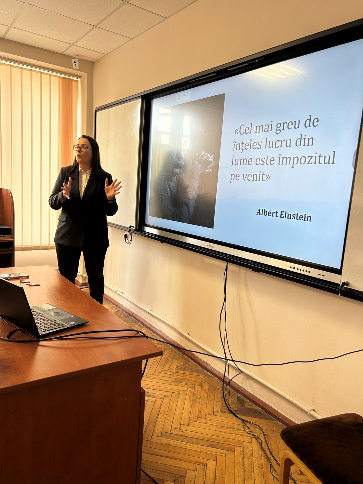 În cadrul seminarului metodic “Provocările profesiei contabile: strategii pentru contabilii începători“, organizat de către dna Natalia Gavrilaș în parteneriat cu dna Natalia Giscă, fondator și administrator Agrocont Service SRL au fost prezentate studenților specialității Contabilitate din cadrul USM oportunitățile profesiei contabile, inclusiv pentru cei care se află la începutul carierei profesionale. Experta în contabilitate a evidențiat importanța și necesitatea studiilor universitare, care oferă contabililor începători o bază solidă de cunoștințe și competențe necesare realizării unei cariere de success, inclusiv pentru inițierea si gestiunea afacerilor în sfera prestării serviciilor de contabilitate si consulting pentru afaceri.