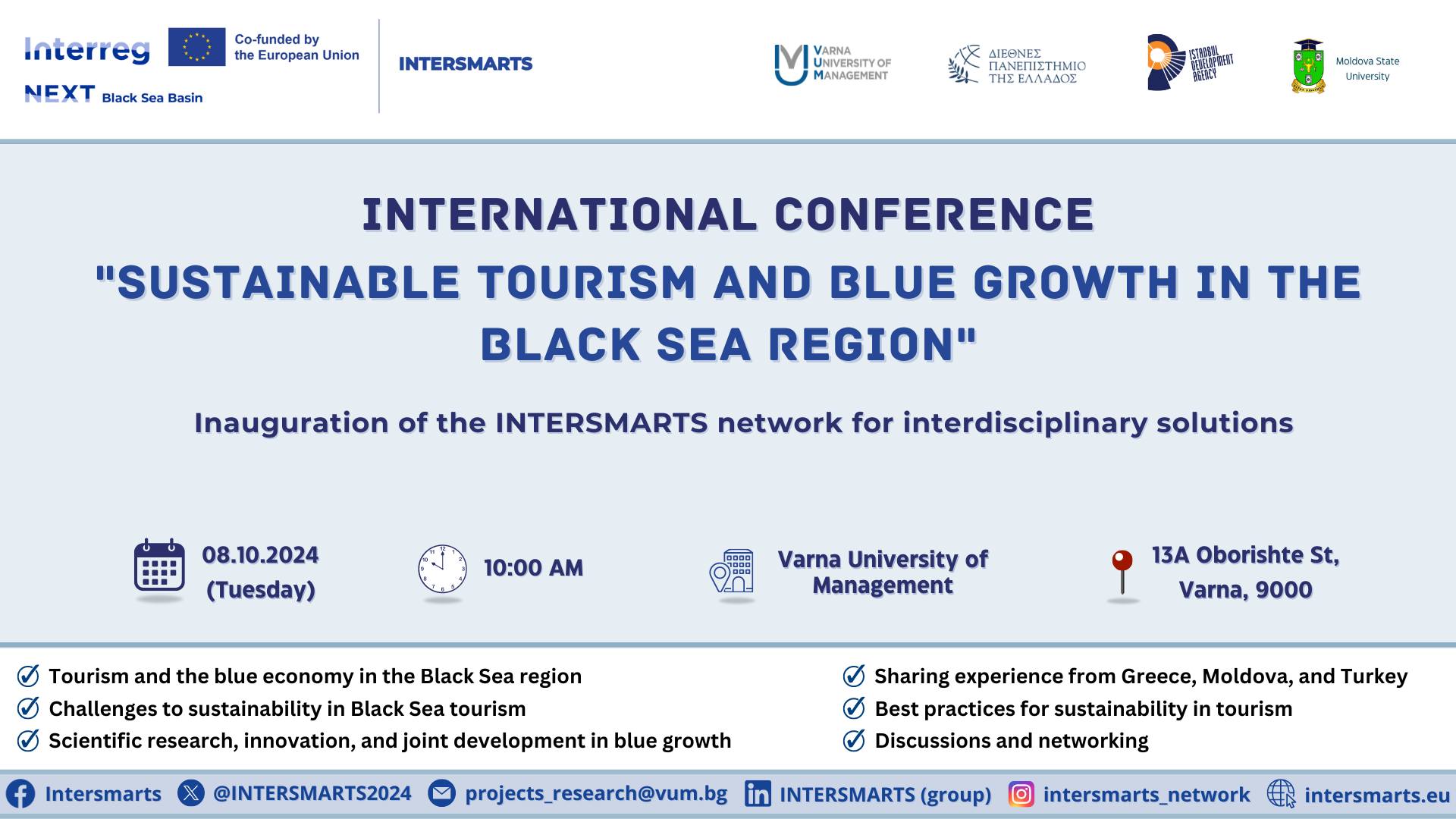 Conferința va inaugura oficial activitatea rețelei internaționale INTERSMARTS – o alianță de experți și cercetători din diverse domenii – care are ca scop creșterea absorbției de noi cunoștințe și inovații în turism și serviciile conexe, pentru a îmbunătăți sustenabilitatea sectorului și a spori contribuția acestuia la creșterea blue în regiunea Mării Negre. Universitatea de Stat din Moldova face parte din această rețea și din consorțiul proiectului BSB00332 „Interdisciplinary Solutions for Smart Sustainable Tourism and Services for Blue Growth in the Black Sea Basin” (INTERSMARTS), care este cofinanțat de Programul INTERREG NEXT Bazinul Mării Negre 2021-2027.