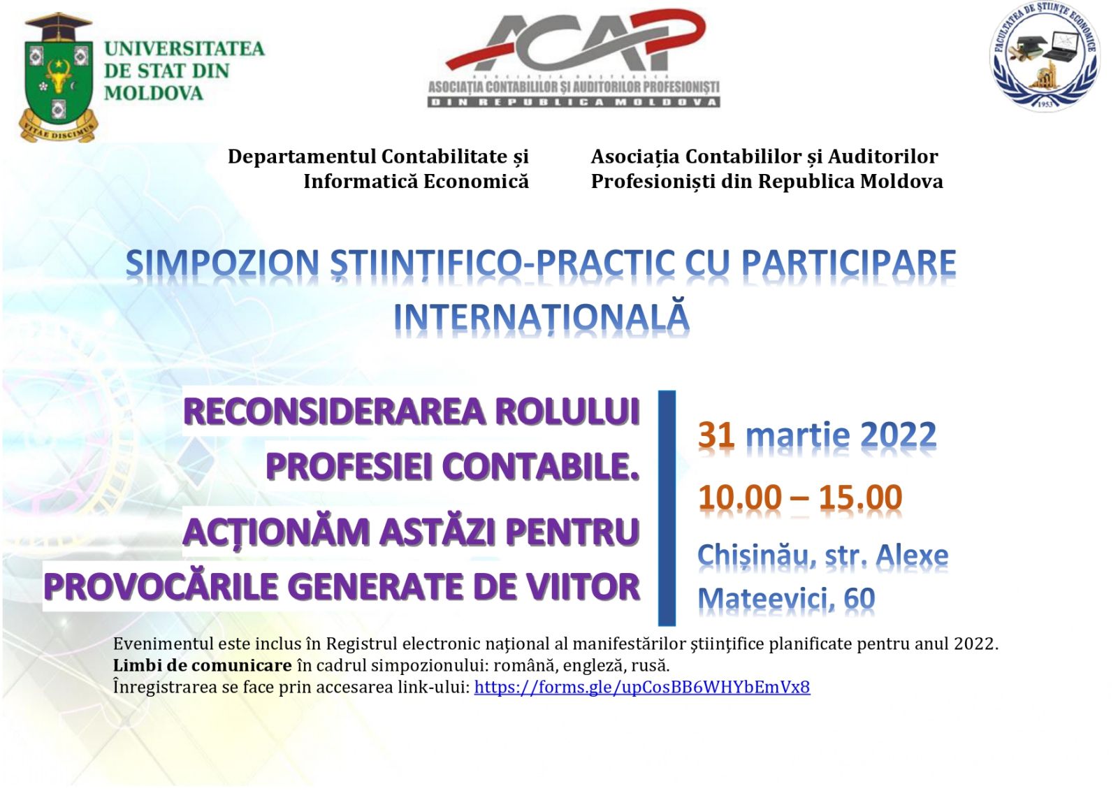 Simpozion Științifico-practic cu participare internațională Friday, 11 March 2022Friday, 11 March 2022 SIMPOZION – 31 martie 2022