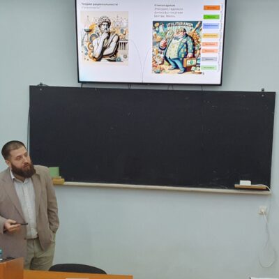 Сегодня на лекции по «Экономической теории II» студенты первого курса прослушали лекцию с тематикой «Поведенческая макроэкономика». Данную лекцию провел приглашенный специалист господина Михаил Зельдин (PhD Candidate (З-й год), Ариэль, Израиль в экономической области; Психологический консультант МА, Манчестер; Эксперт по краудфандингу; Директор по связям бизнес акселератора и др.).