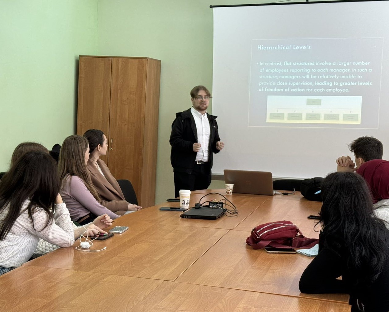 Daniel GHERASIM, un student dedicat de la Facultatea de Științe Economice, a preluat rolul de profesor adjunct, a prezentat colegilor săi de la programul Business Administrarea cu predare în limba engleză, un material educațional relevant.