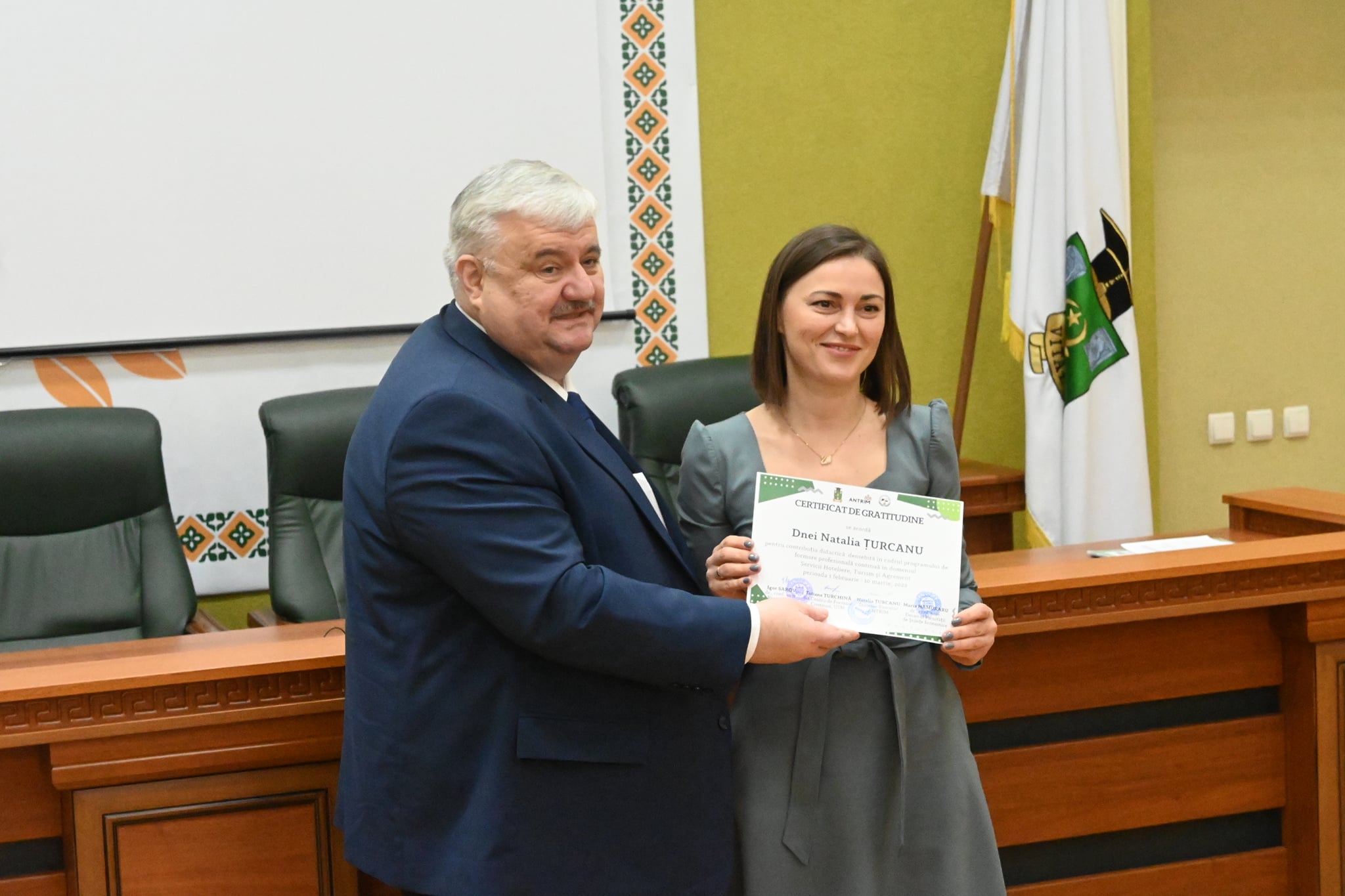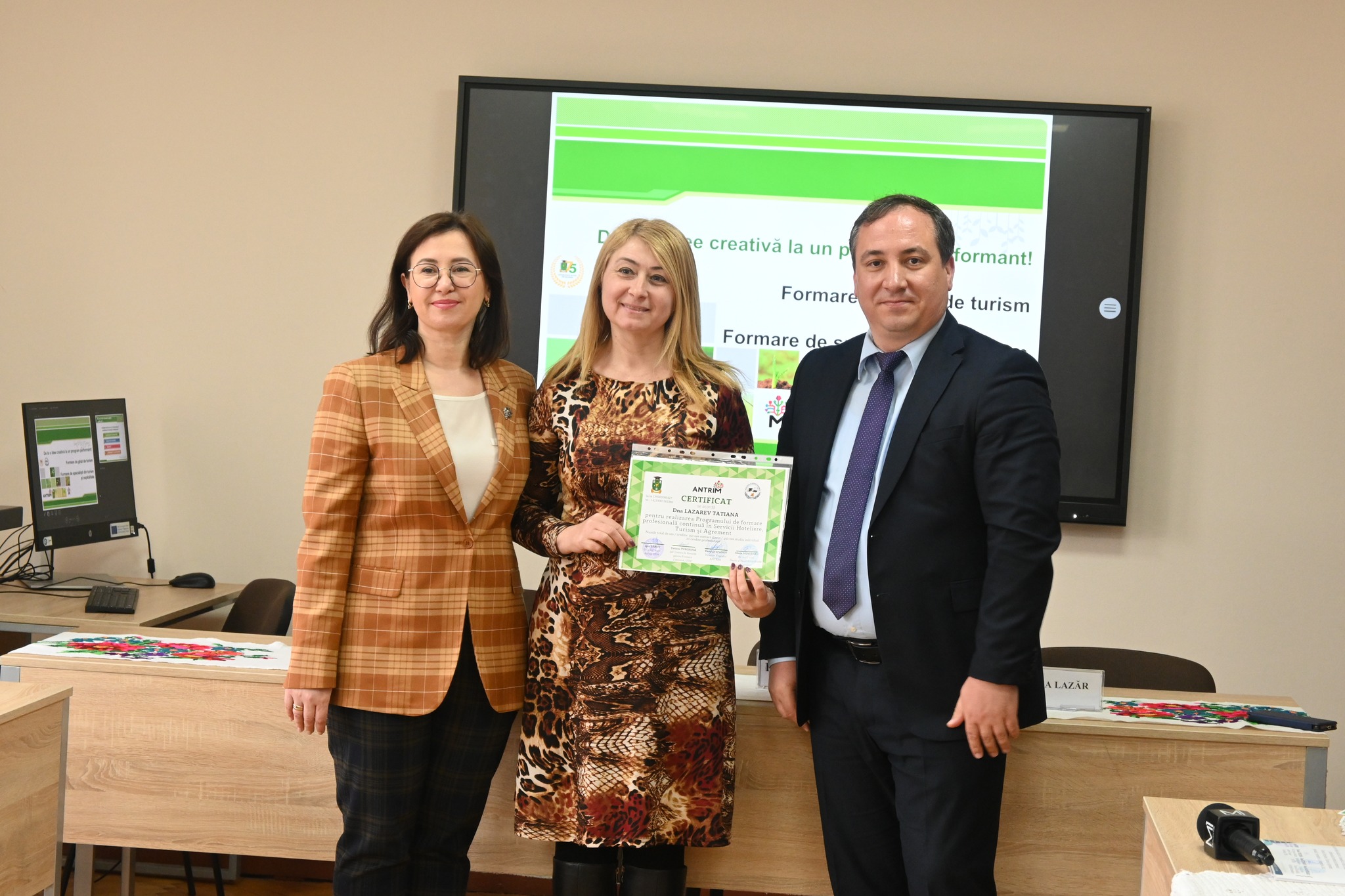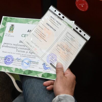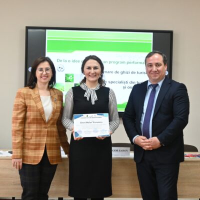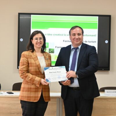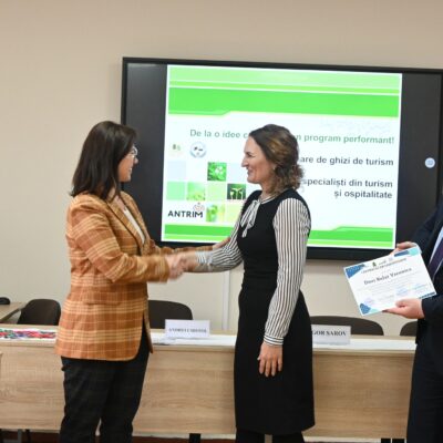 Evenimentul dedicat înmânării certificatelor de absolvire pentru 23 formabili ai cursului de perfecționare în domeniul Servicii Hoteliere, Turism și Agrement s-a desfășurat astăzi, 30.11.2023, reunind reprezentanții industriei turismului și mediul academic la o discuție constructivă privind oportunitățile și provocările acestei ramuri.