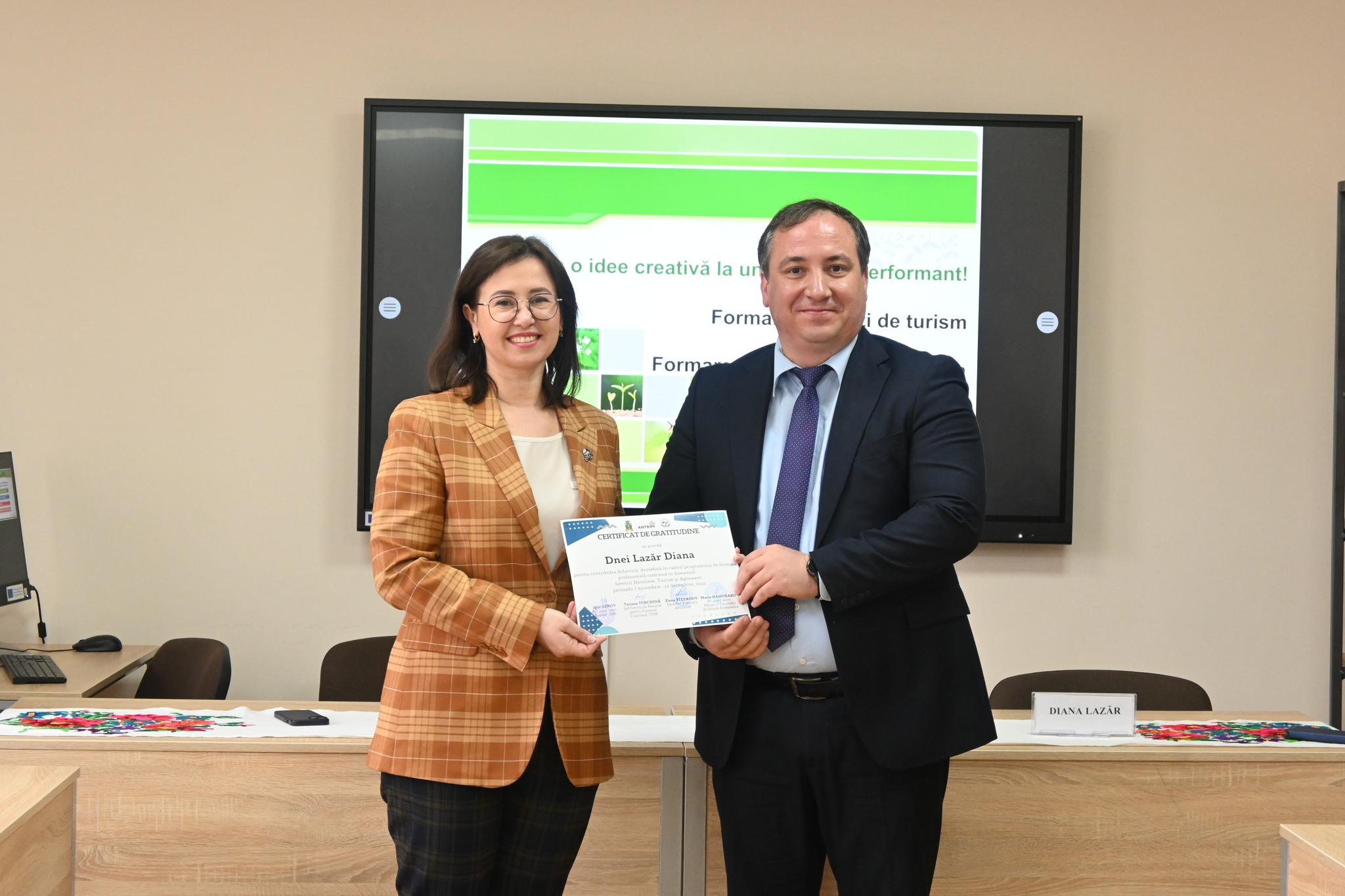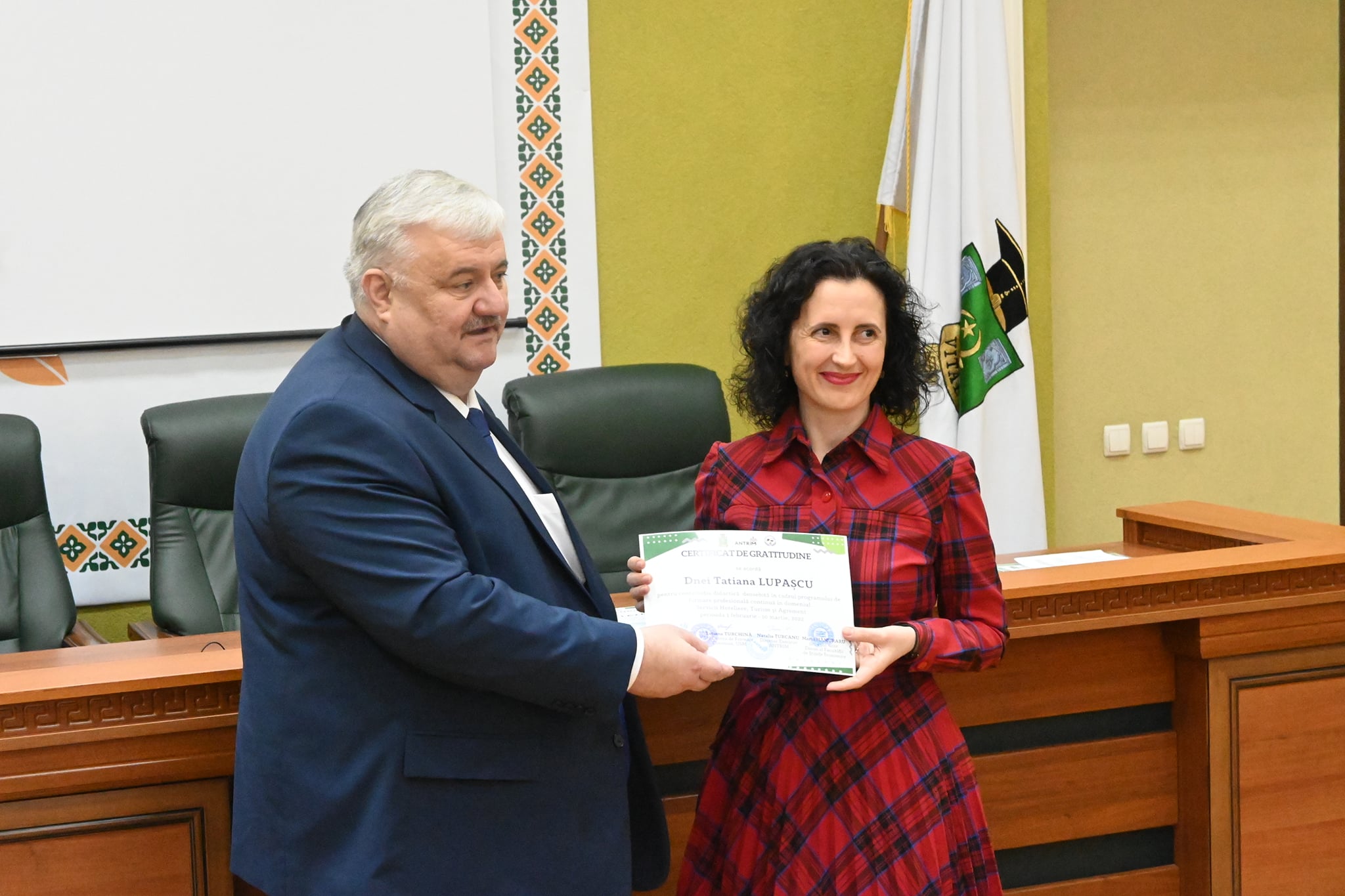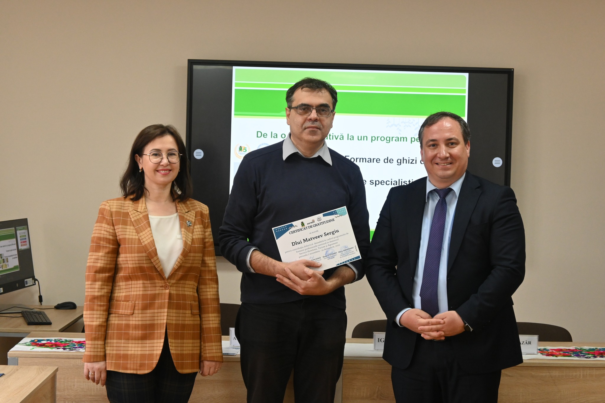 Evenimentul dedicat înmânării certificatelor de absolvire pentru 23 formabili ai cursului de perfecționare în domeniul Servicii Hoteliere, Turism și Agrement s-a desfășurat astăzi, 30.11.2023, reunind reprezentanții industriei turismului și mediul academic la o discuție constructivă privind oportunitățile și provocările acestei ramuri.