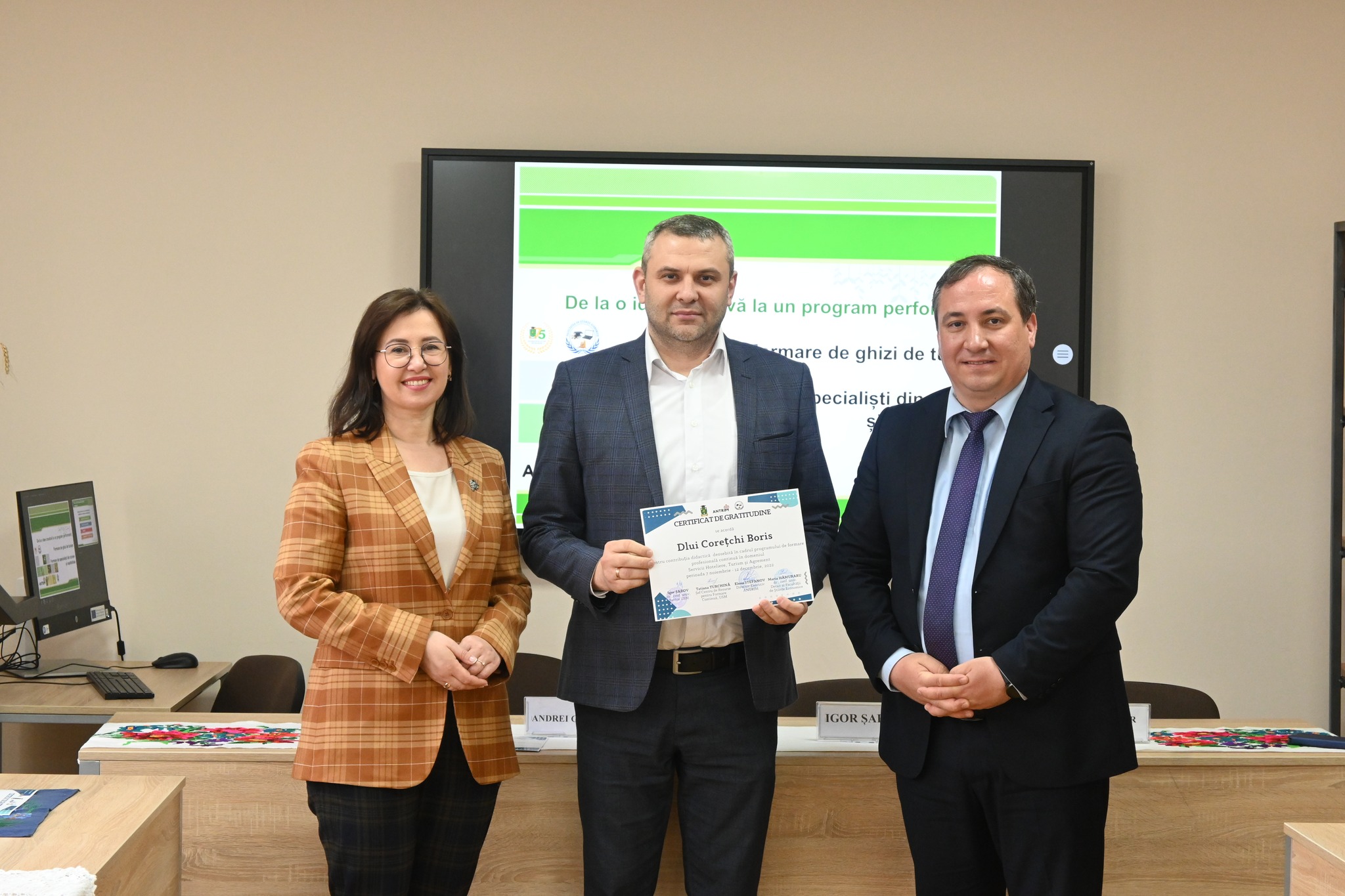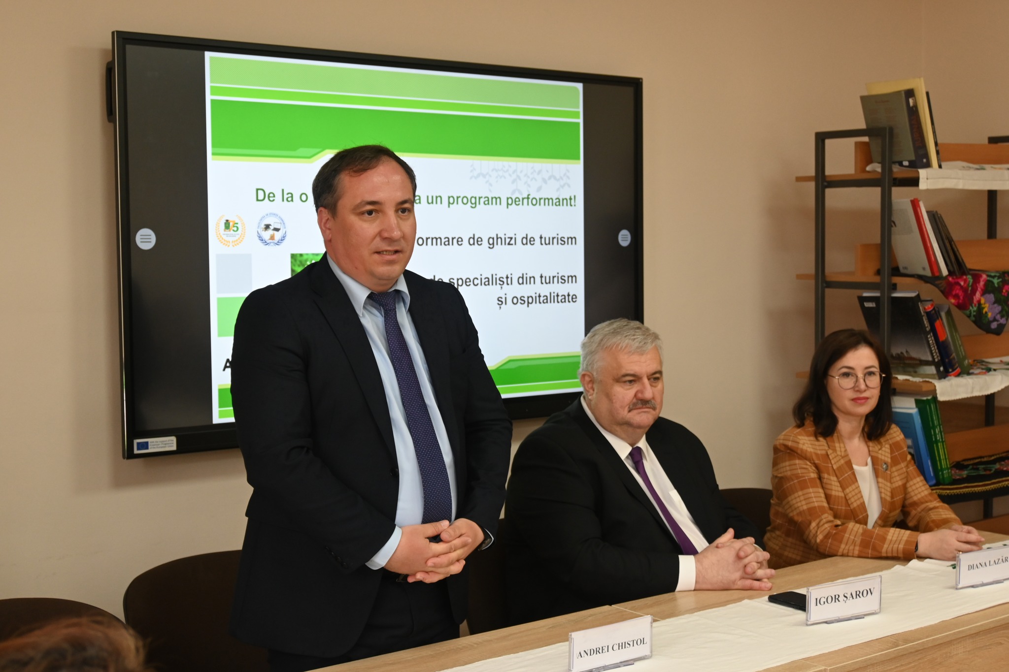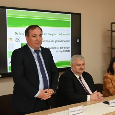 Invitat de onoare al evenimentului a fost Dnul Andrei Chistol, Secretar de Stat în cadrul Ministerului Culturii Republicii Moldova care a menționat ”... turismul este o prioritate a economiei naționale, iar în ultimii ani, programele ministeriale au pus accentul pe atragerea investițiilor și implementarea noilor tehnologii și standarde de calitate în turism. Acest rezultat frumos, abținut în comun, prin instruirea grupului de 23 antreprenori din domeniul turismului, susținut financiar de către Ministerul Culturii al Republicii Moldova relevă importanța asigurării unei comunicări eficiente între activitatea practică și cea academică utilizată în instruirea viitorilor specialiști din domeniul turismului.”