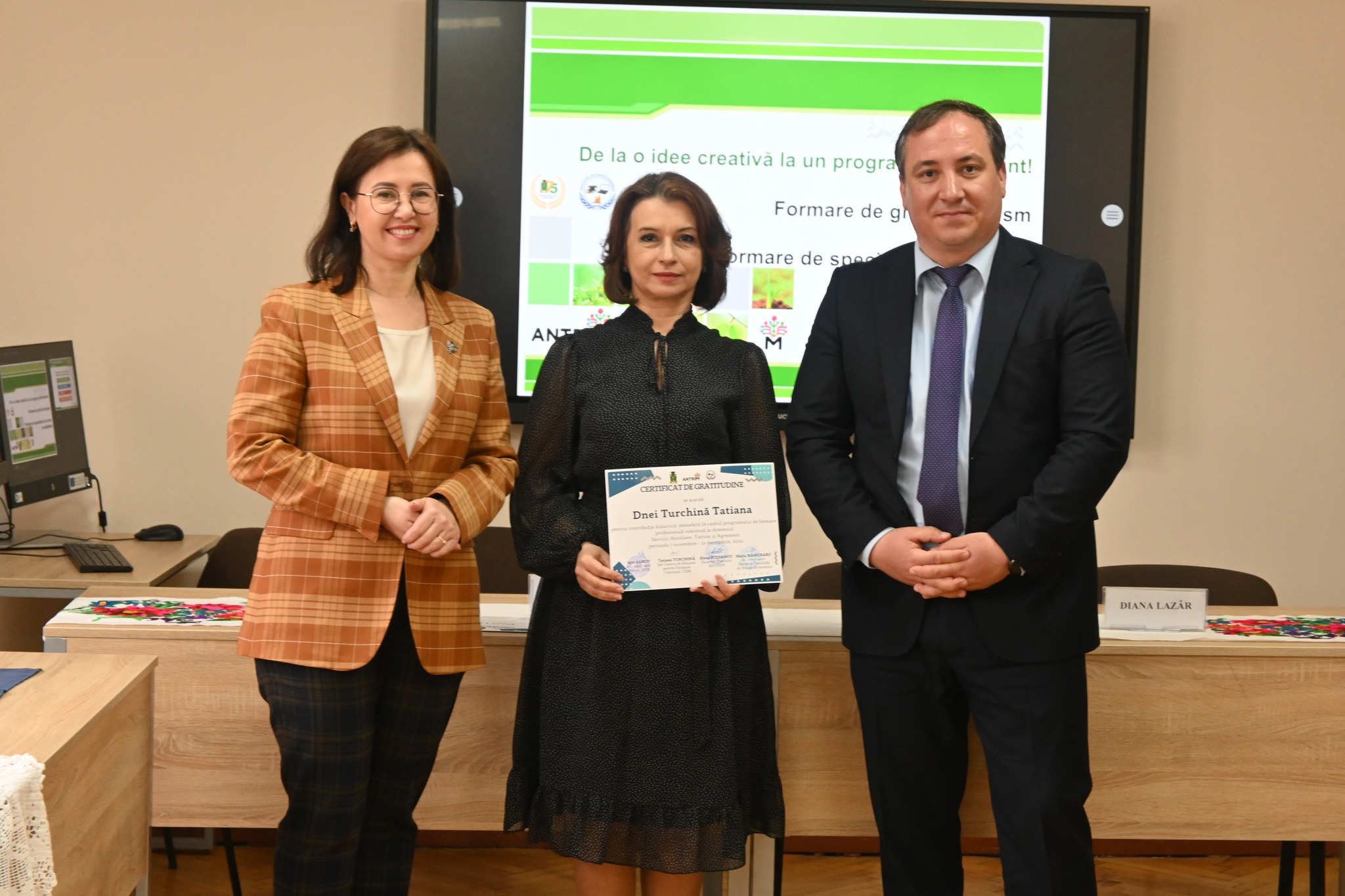 Sentimente de gratitudine transmitem tuturor formatorilor din industria turismului și din mediul academic care contribuie la formarea de competențe profesionale cu multă dedicație și profesionalism precum și Ministerului Culturii al Republicii Moldova pentru suportul oferit în instruirea formabililor!