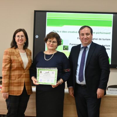 Dna Natalia Țurcanu, manager pentru dezvoltarea Turismului în Proiectul de Competitivtate și Reziliență Rurală, finanțat de USAID, a adus un cuvânt de felicitare absolvenților pentru implicarea activă și promovare a valorilor instruirilor în rândul antreprenorilor din domeniul turismului menționând „... țara noastră a cunoscut mai multe progrese în domeniul dezvoltării industriei turismului, iar printre cei care au depus o muncă asiduă pentru promovarea imaginii de țară prin dezvoltarea turismului și valorificarea ospitalității, tradițiilor și valorilor autentice.”