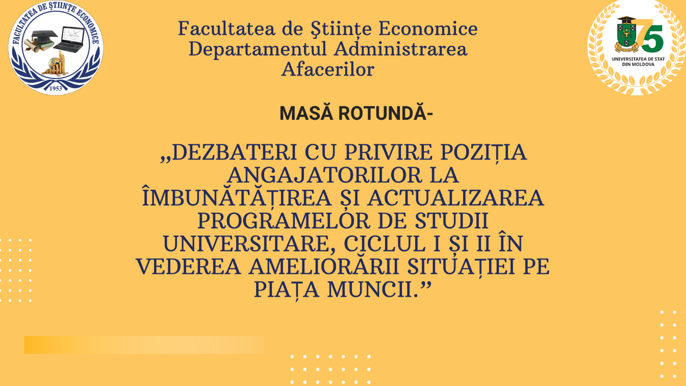 𝐌𝐚𝐬𝐚 𝐫𝐨𝐭𝐮𝐧𝐝𝐚̆ cu genericul: „Dezbateri cu privire poziția angajatorilor la îmbunătățirea și actualizarea programelor de studii universitare, Ciclul I și II în vederea ameliorării situației pe piața muncii.” 16 decembrie 2021